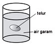 dapur ke dalam air. Setelah air tenang, perlahan-lahan telur tersebut naik dan